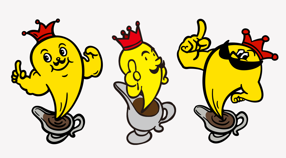これまで様々なデザイナーさんなどにも描いて頂いた「チャンカレのカレ」。地元石川県のアーティストKENTOOさんに描いていただいたカレはPOPでTシャツなどのグッズとしてもとても人気があります。また現社長が描いたカレはとてもかわいい仕上がりで、直営店の玉鉾店と富山新庄店にて使用されています。このほか、アメリカの店舗のカレはちょっとワイルドと、実は色んな顔を持つカレです。