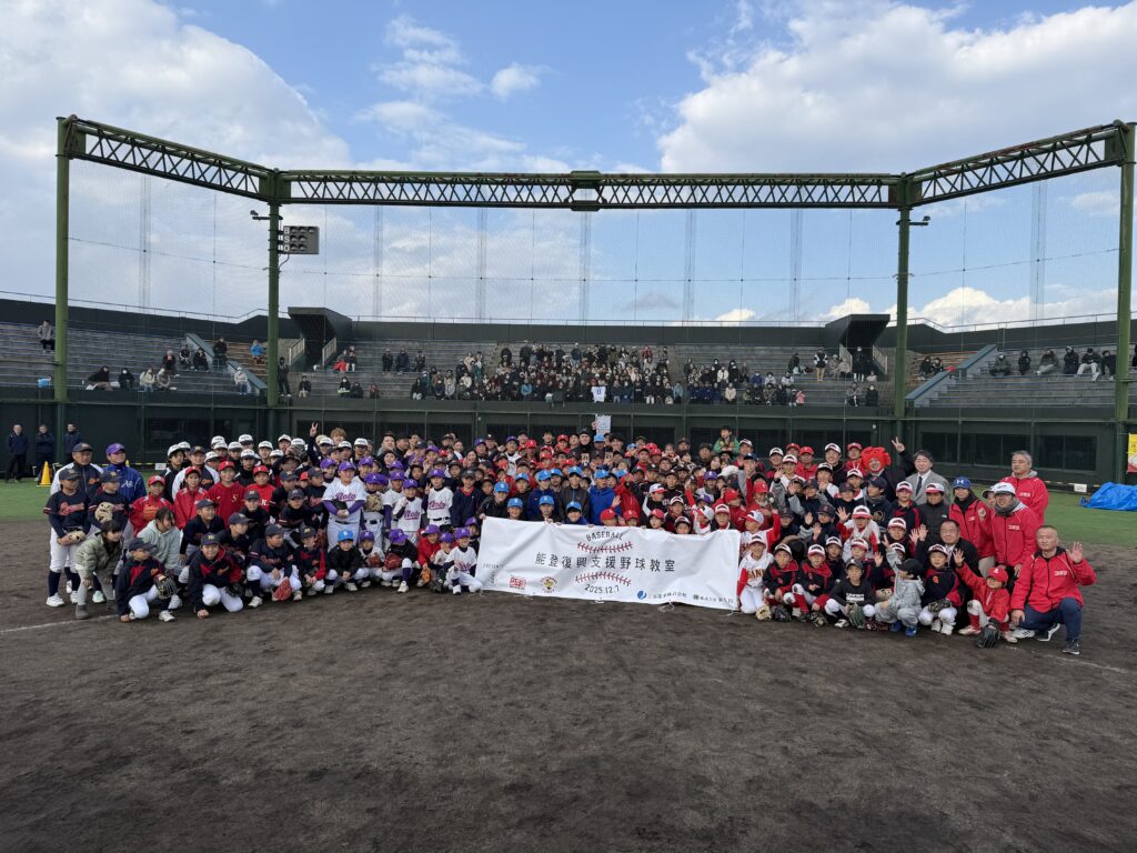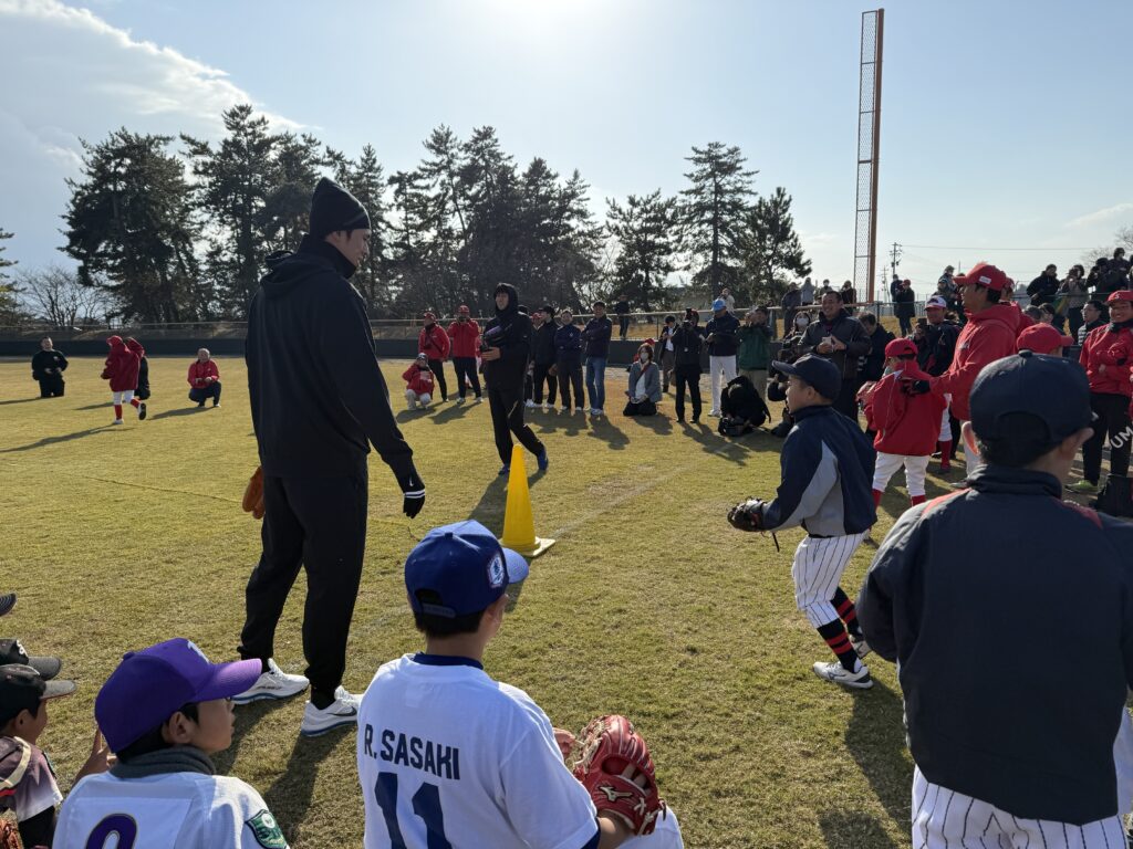 2025年12月7日(日)にドジャースの佐々木朗希投手が、能登半島地震で被害を受けた石川県珠洲市で、古巣のロッテの高野脩汰投手とともに、地元の子どもたち約170人に野球教室を開催しました。