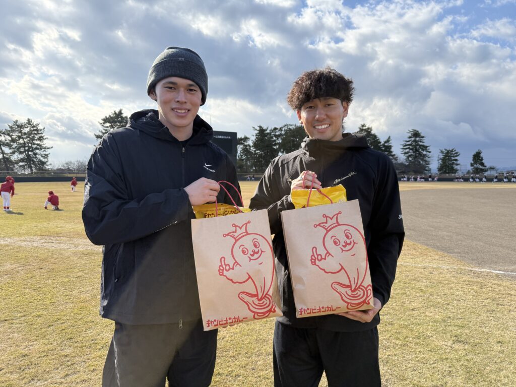 教室の最後には、子どもたちに選手のサインボールのほか、チャンカレレトルトもプレゼント。元気に練習に取り組む子どもたちに、高野投手が「いつか一緒にプレーするのを楽しみにしています」と話すなど和やかな時間となりました。
