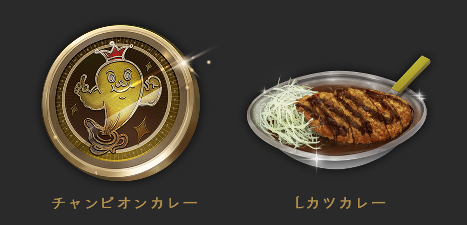 ゲーム内では、チャンピオンカレーをモチーフにした以下のコラボアイテムが登場予定です。